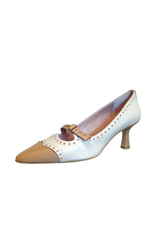 A.I. SALDI - Décolleté nappa cammello e bianco