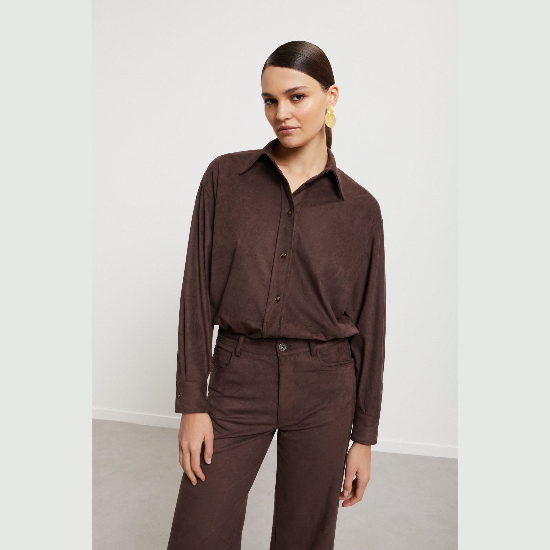 Camicia over con effetto suede, fondo arrotondato e pinces.