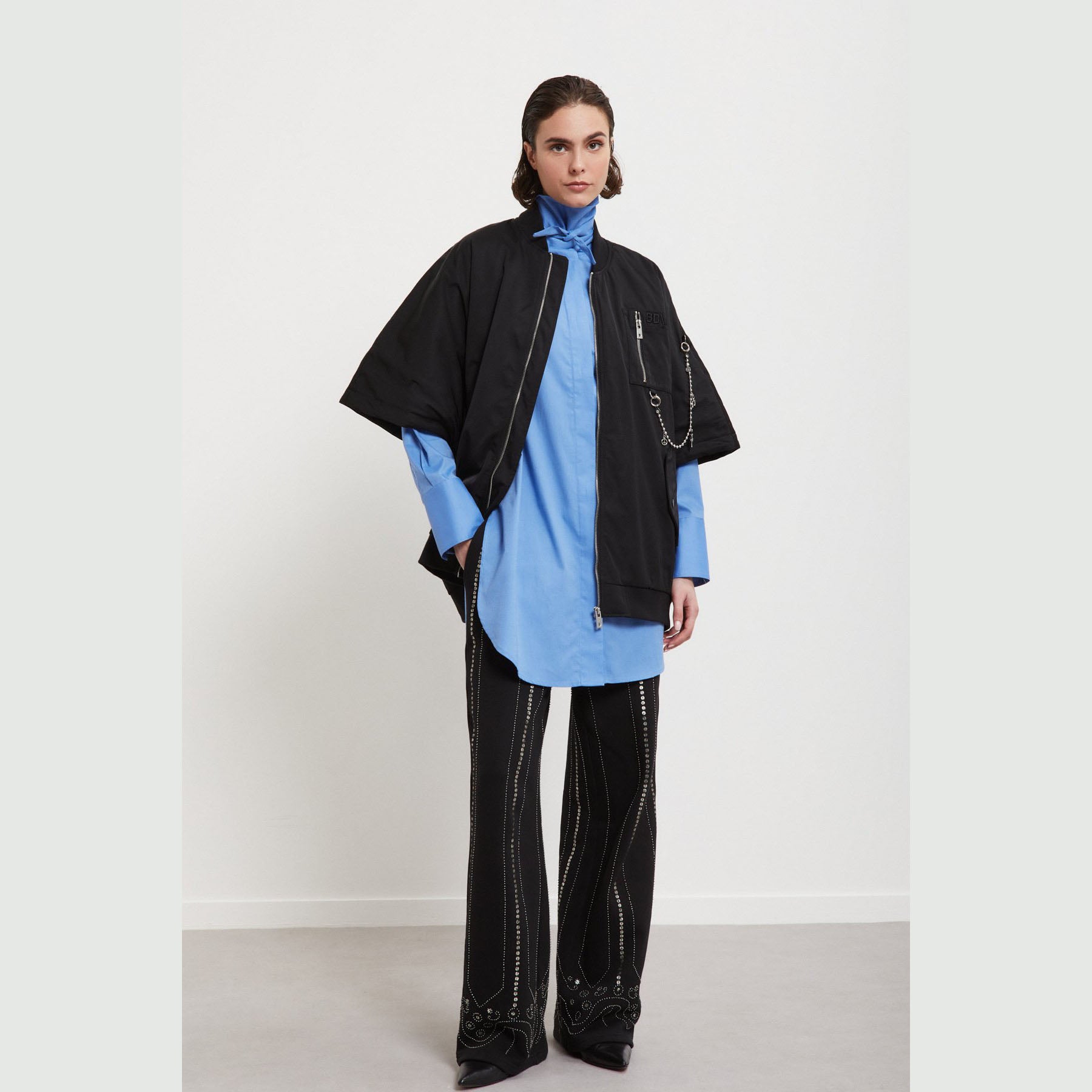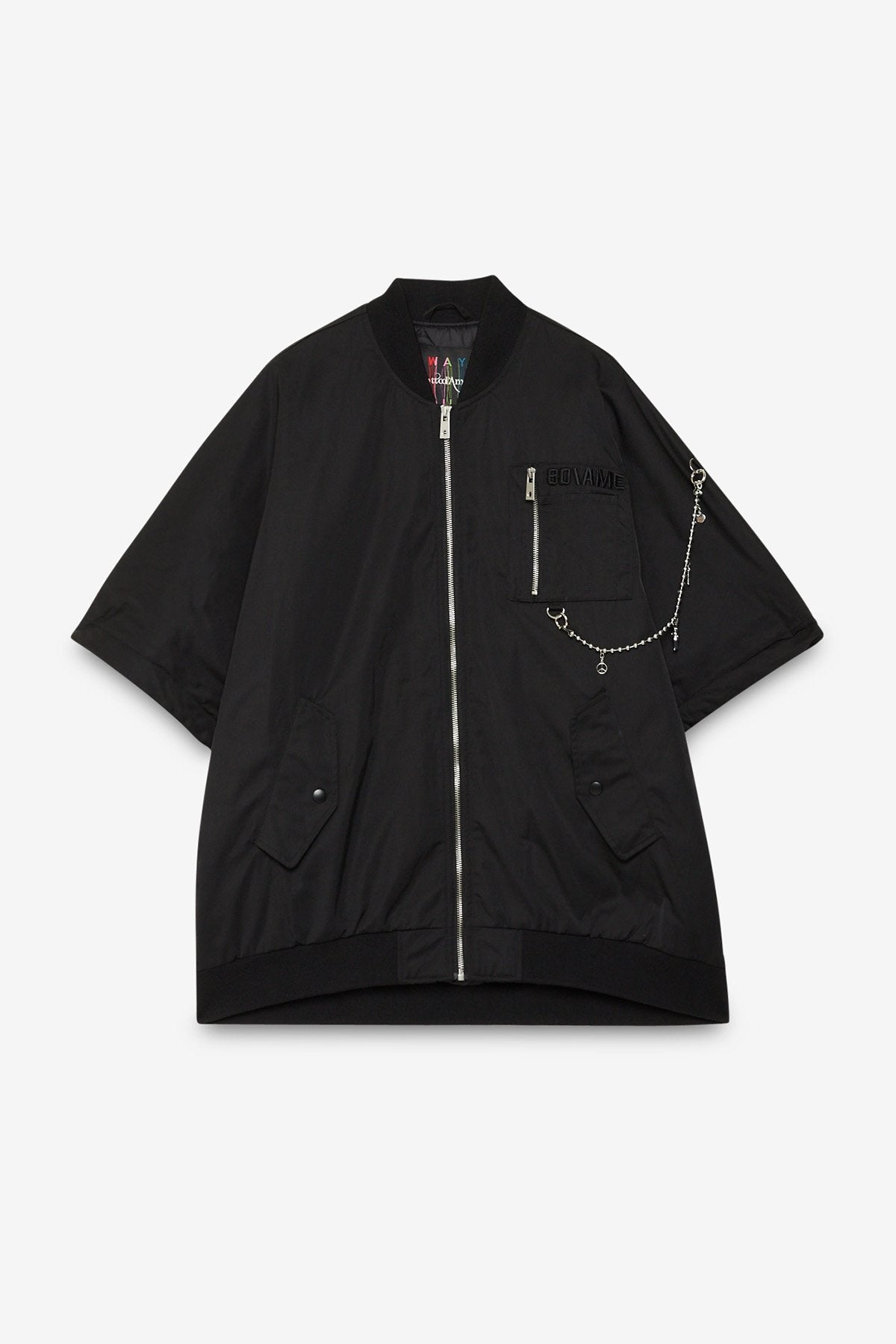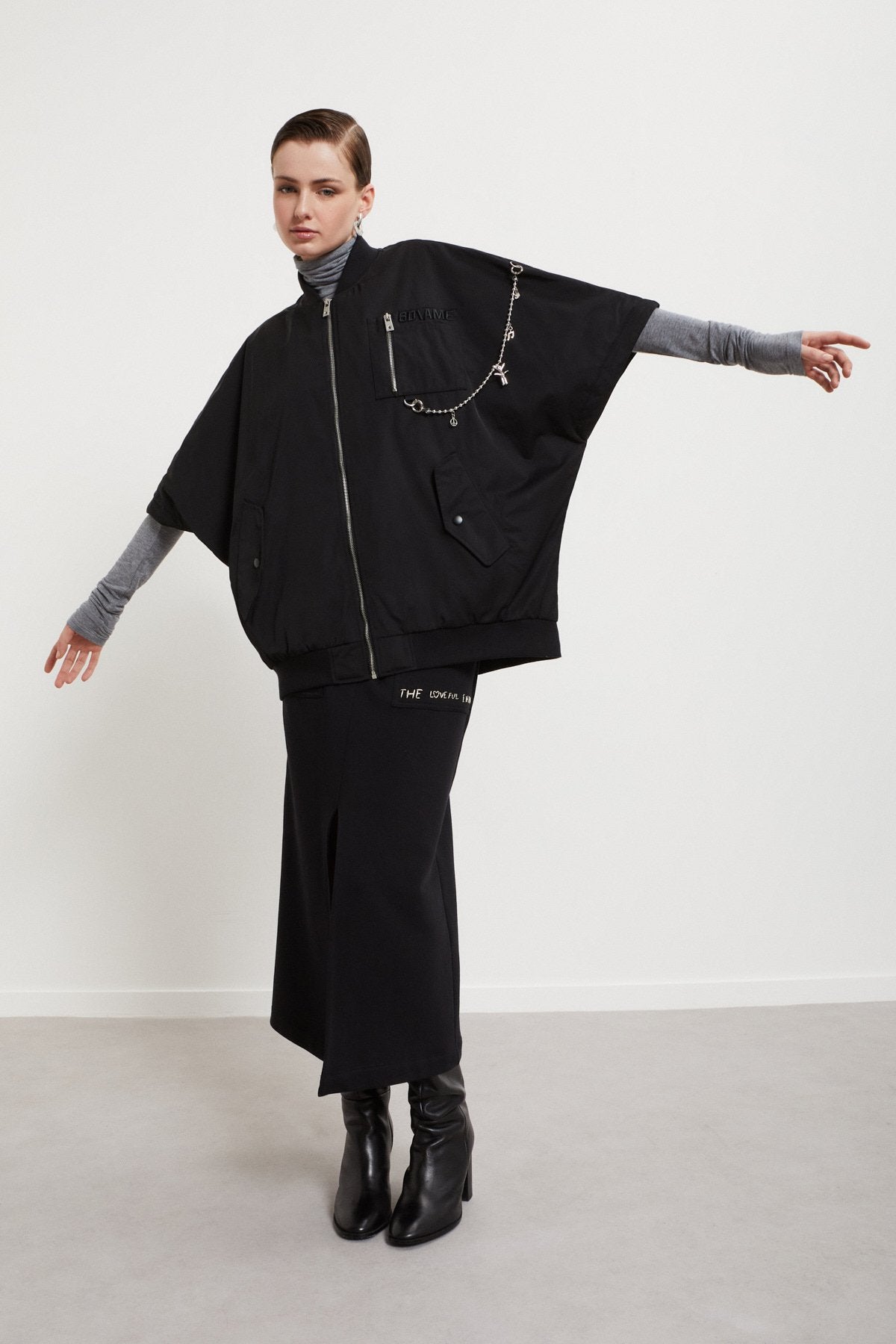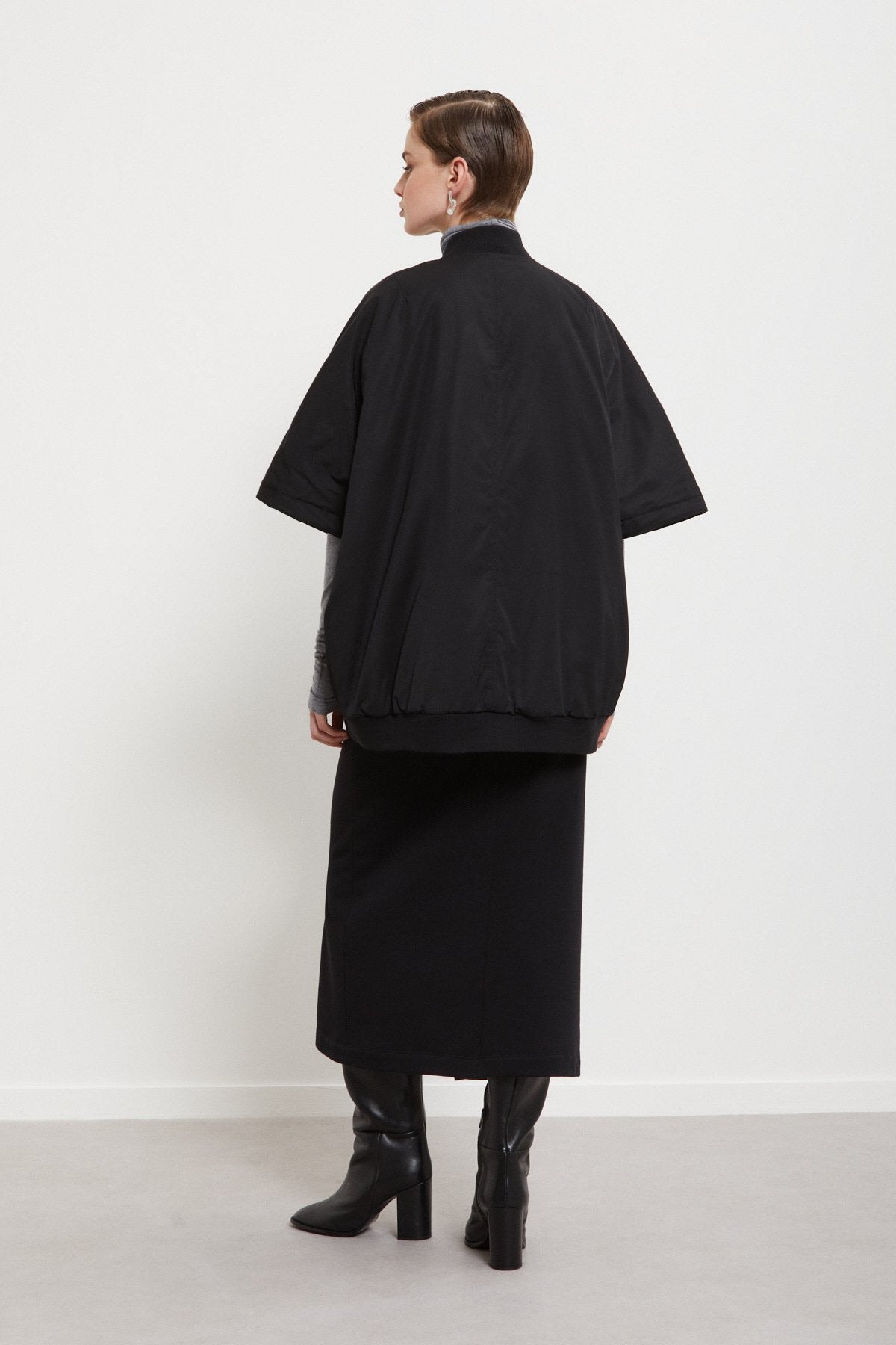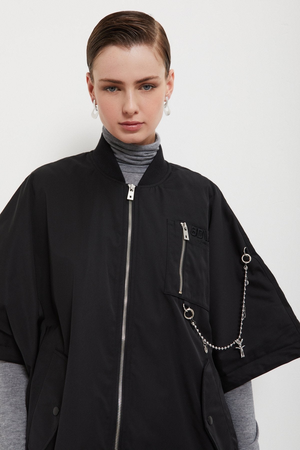 Cappa taglio bomber imbottita con zip, manica 3/4 e applicazione gioiello.