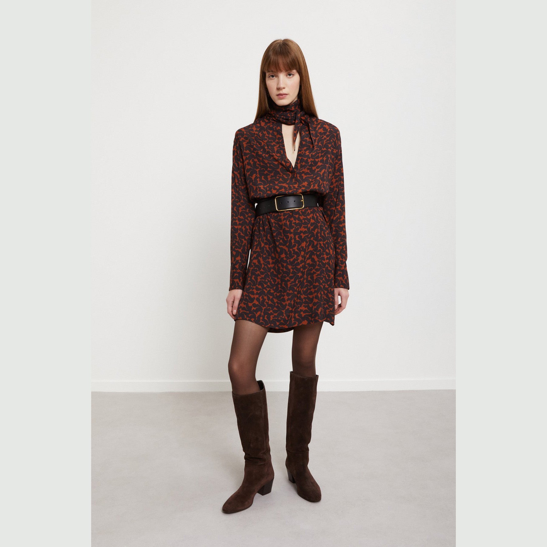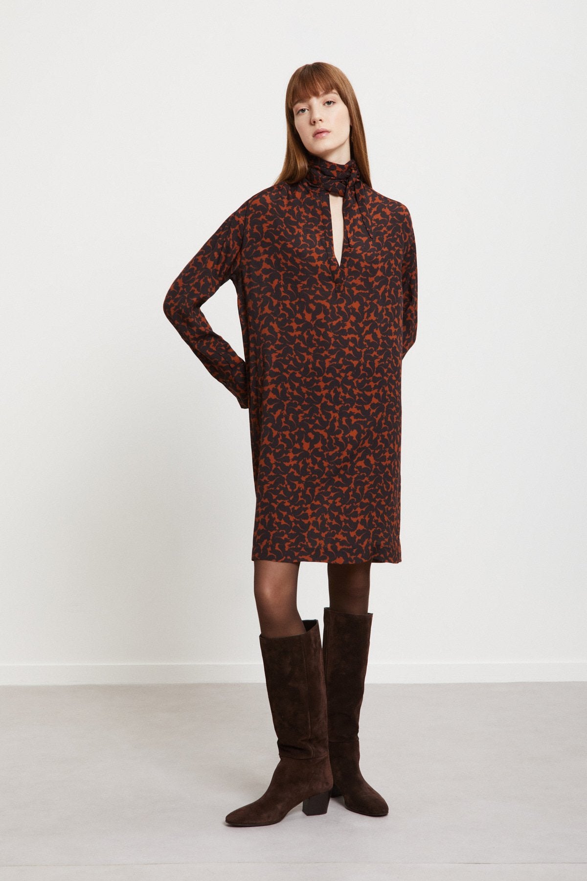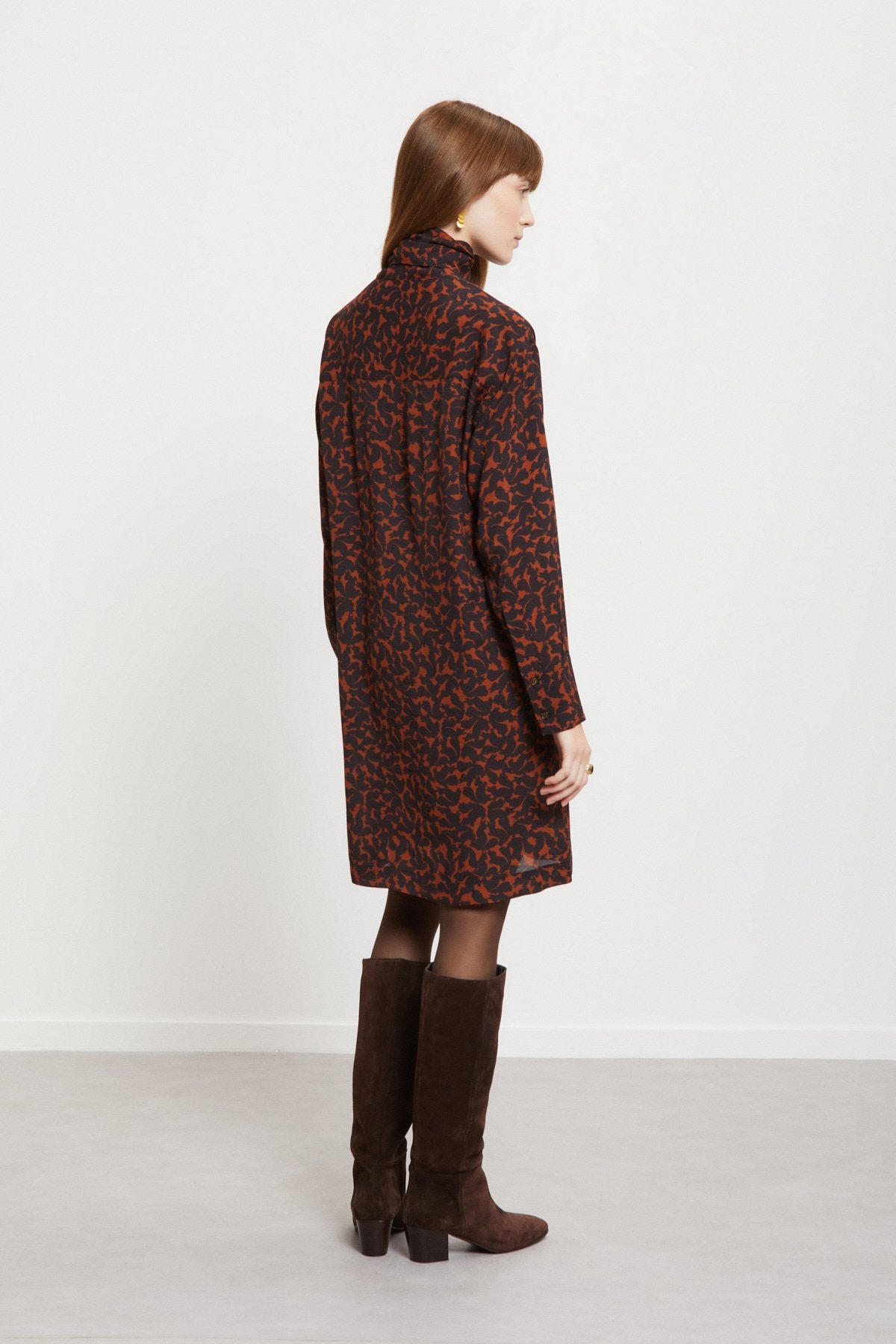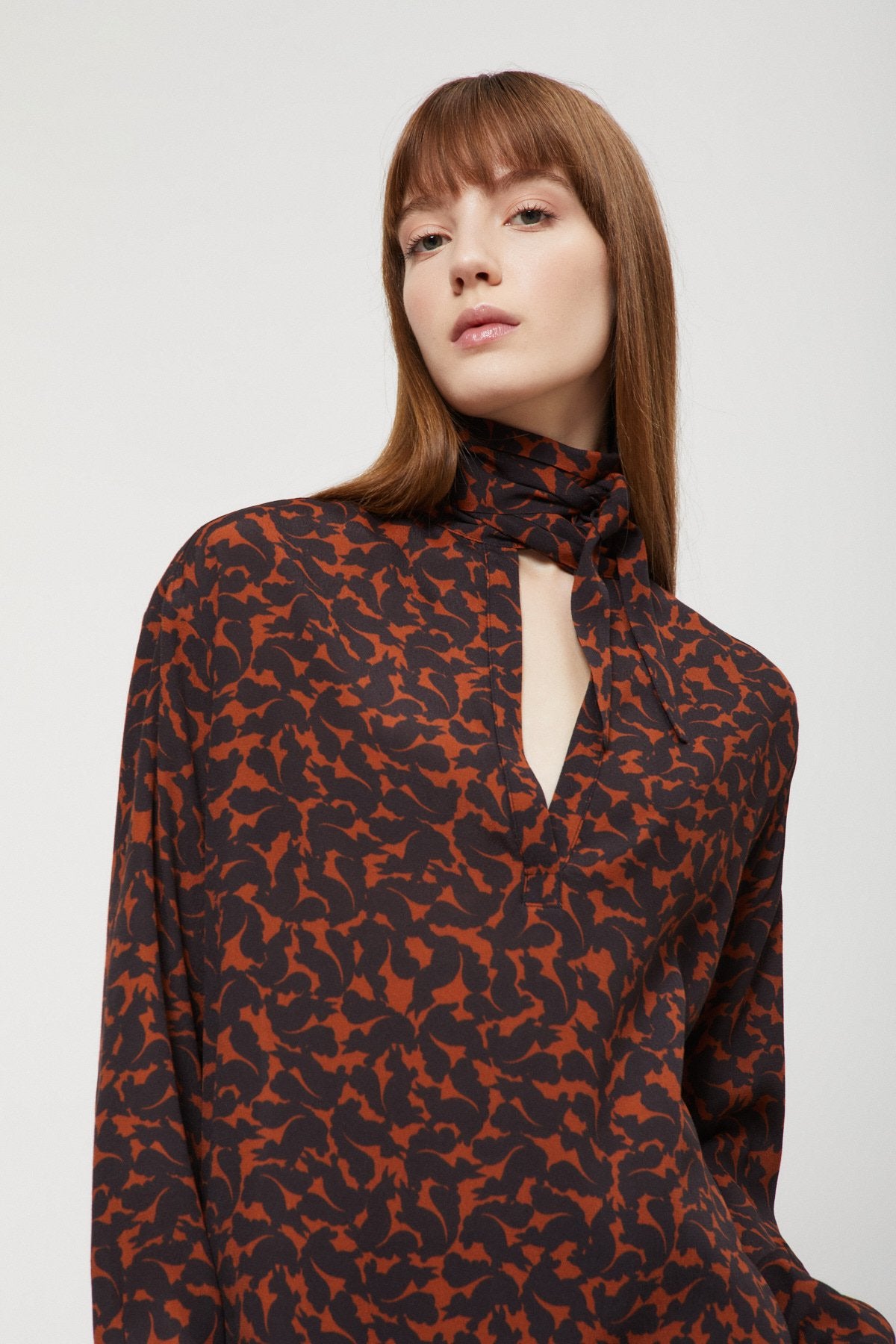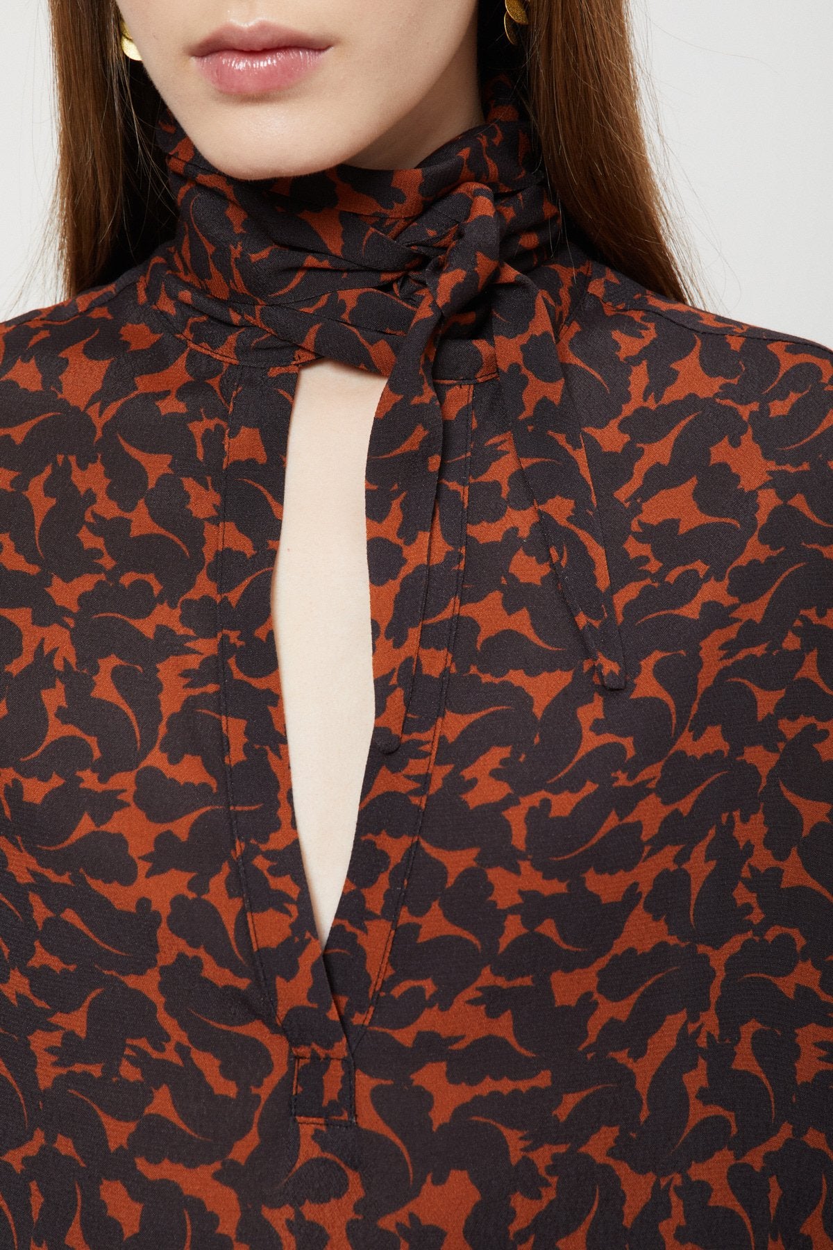 Chemiser corto in pura viscosa stampata con scollo foulard.