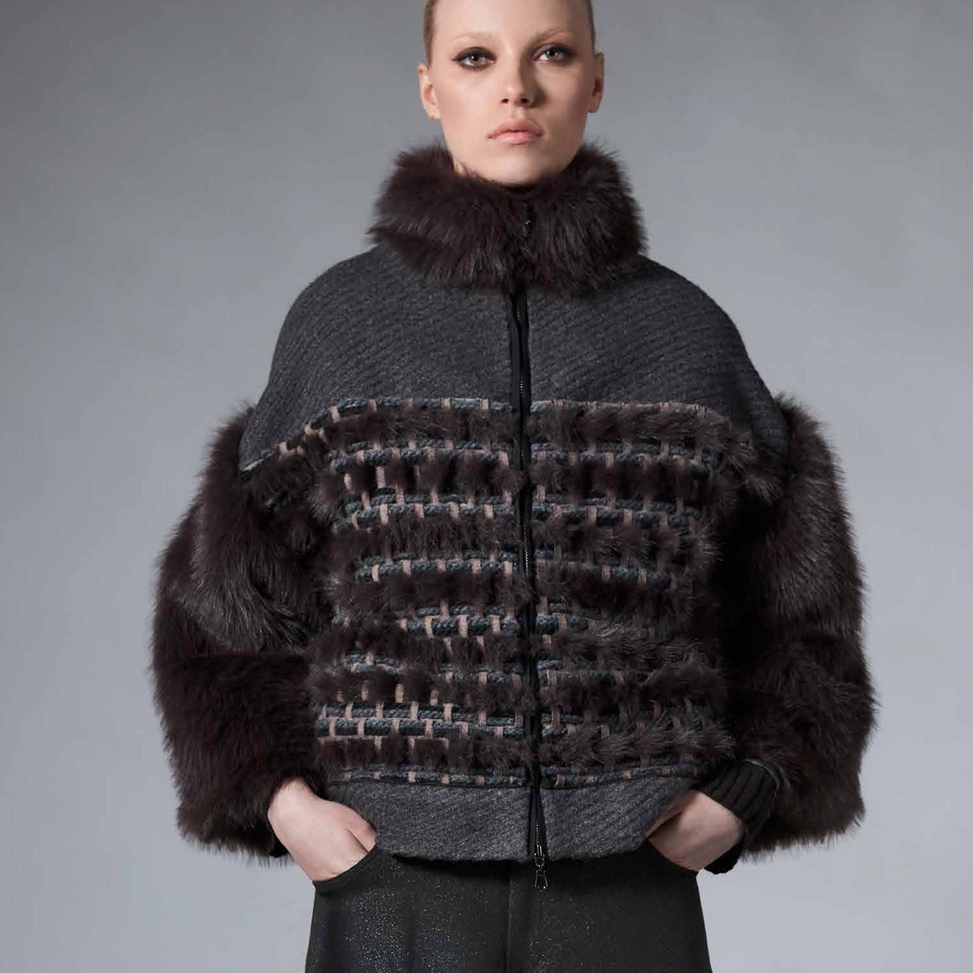 Giacca ecopelliccia - nero e moro