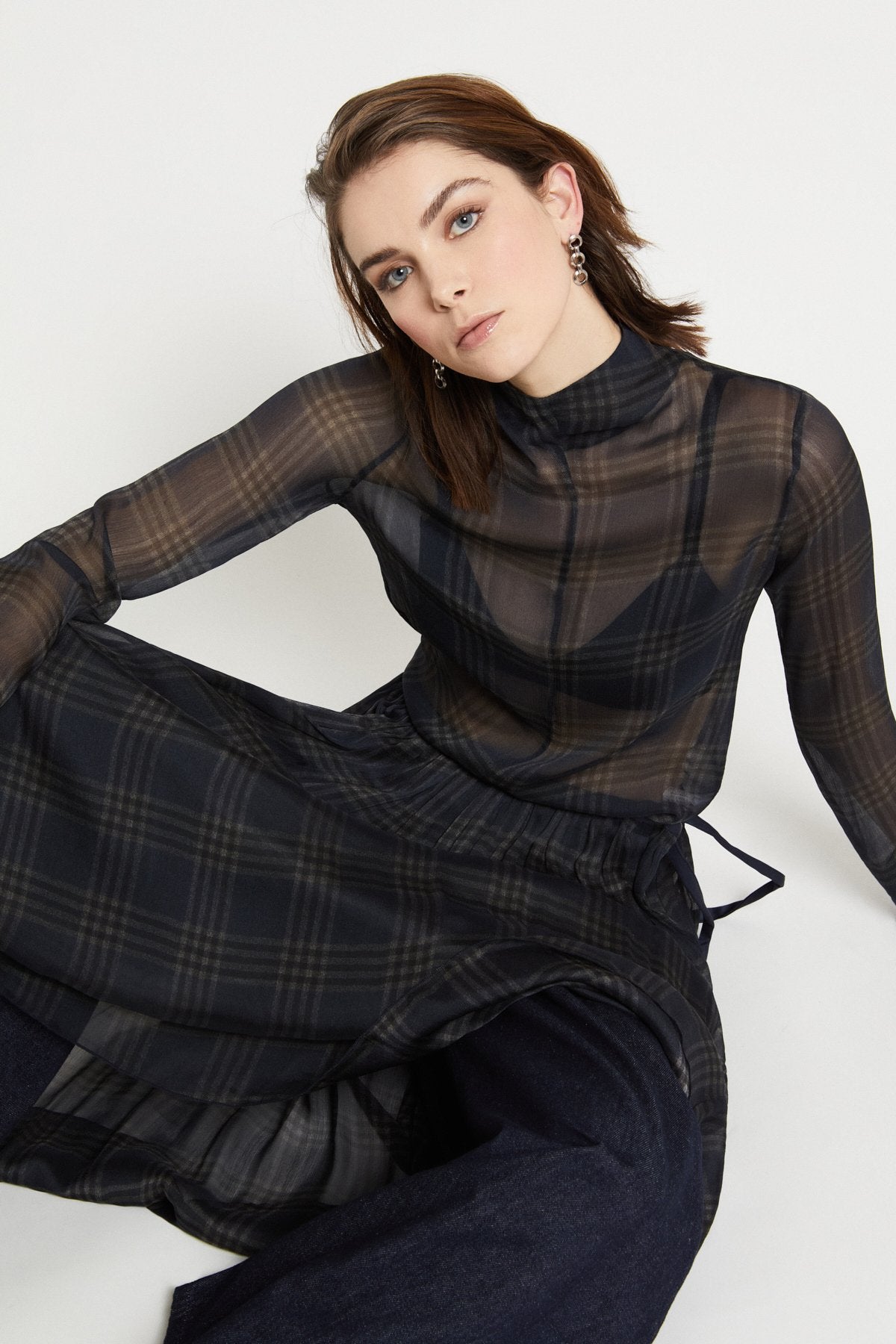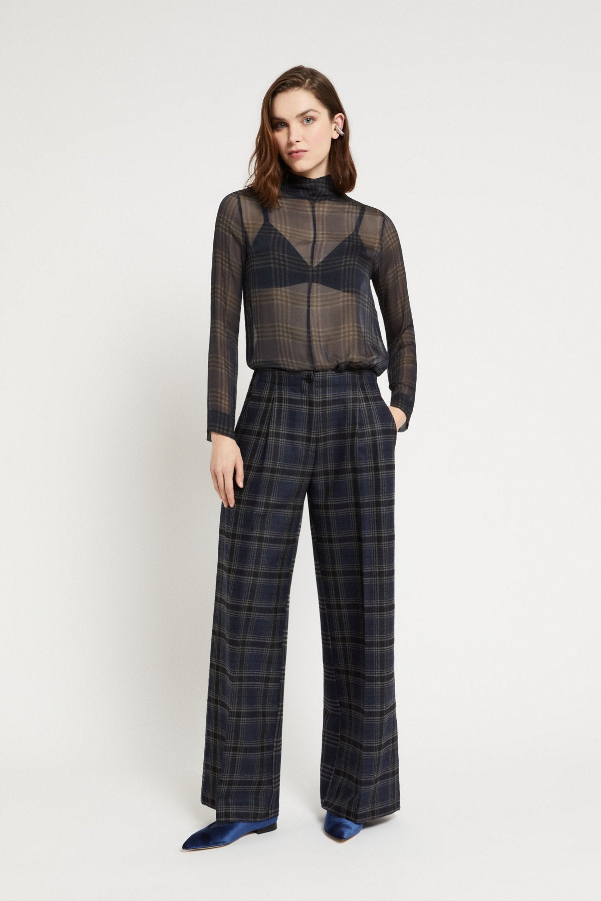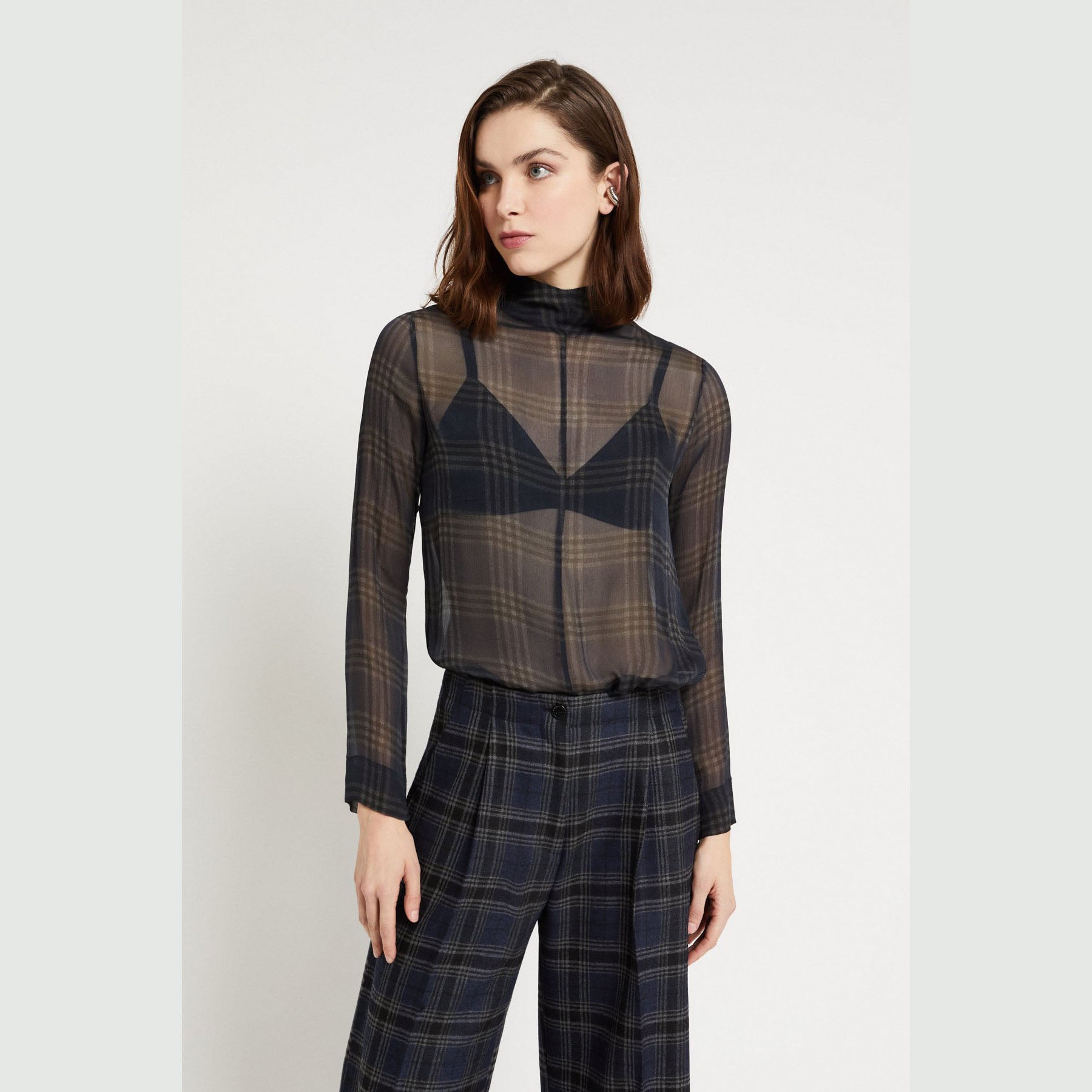 Maglia dolcevita in pura viscosa ultralight con stampa check.