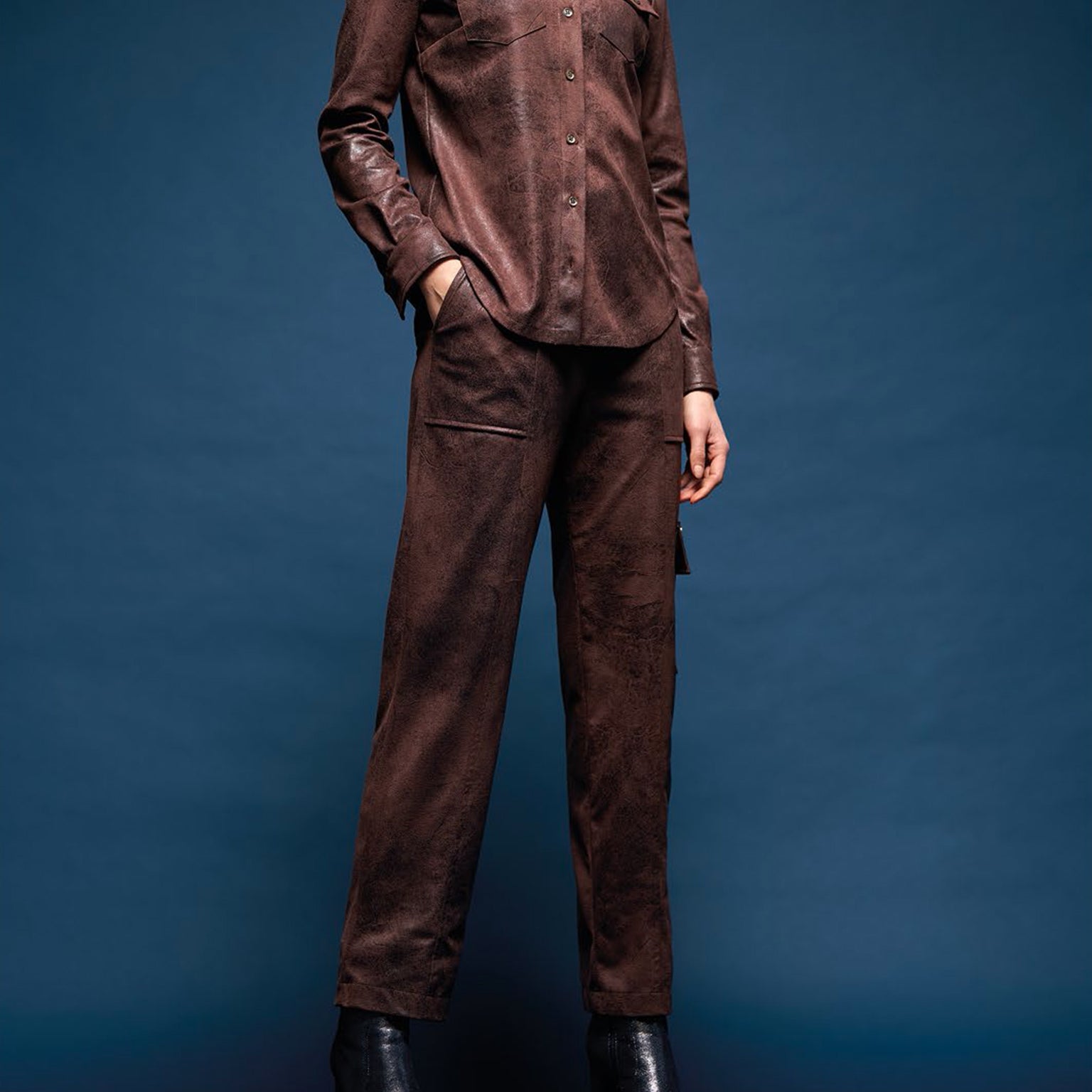 Pantaloni cargo ecopelle - testa di moro