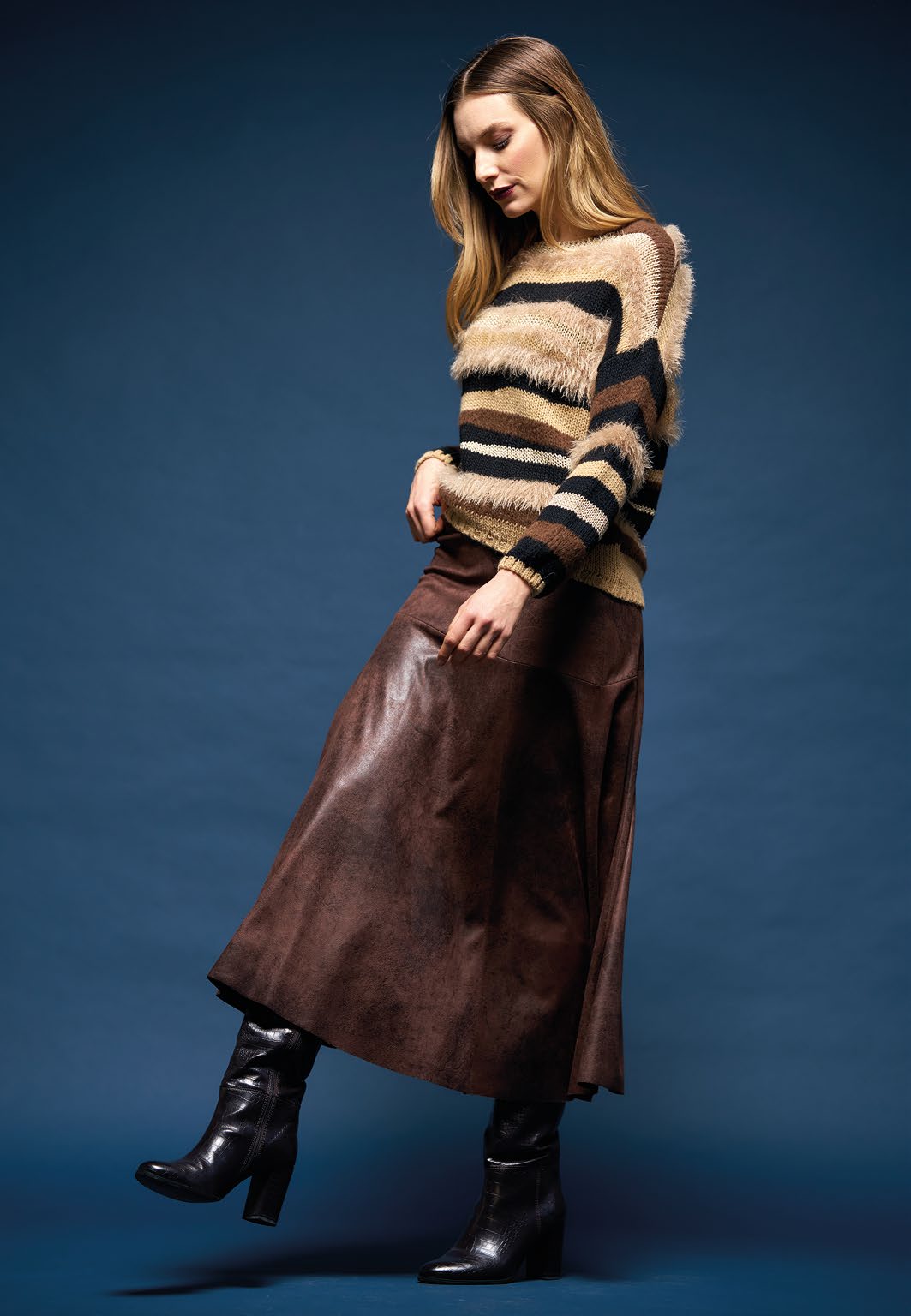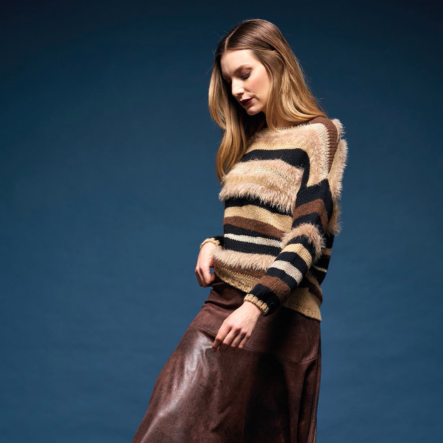 Pullover scollo a barchetta sui toni del nero e marrone