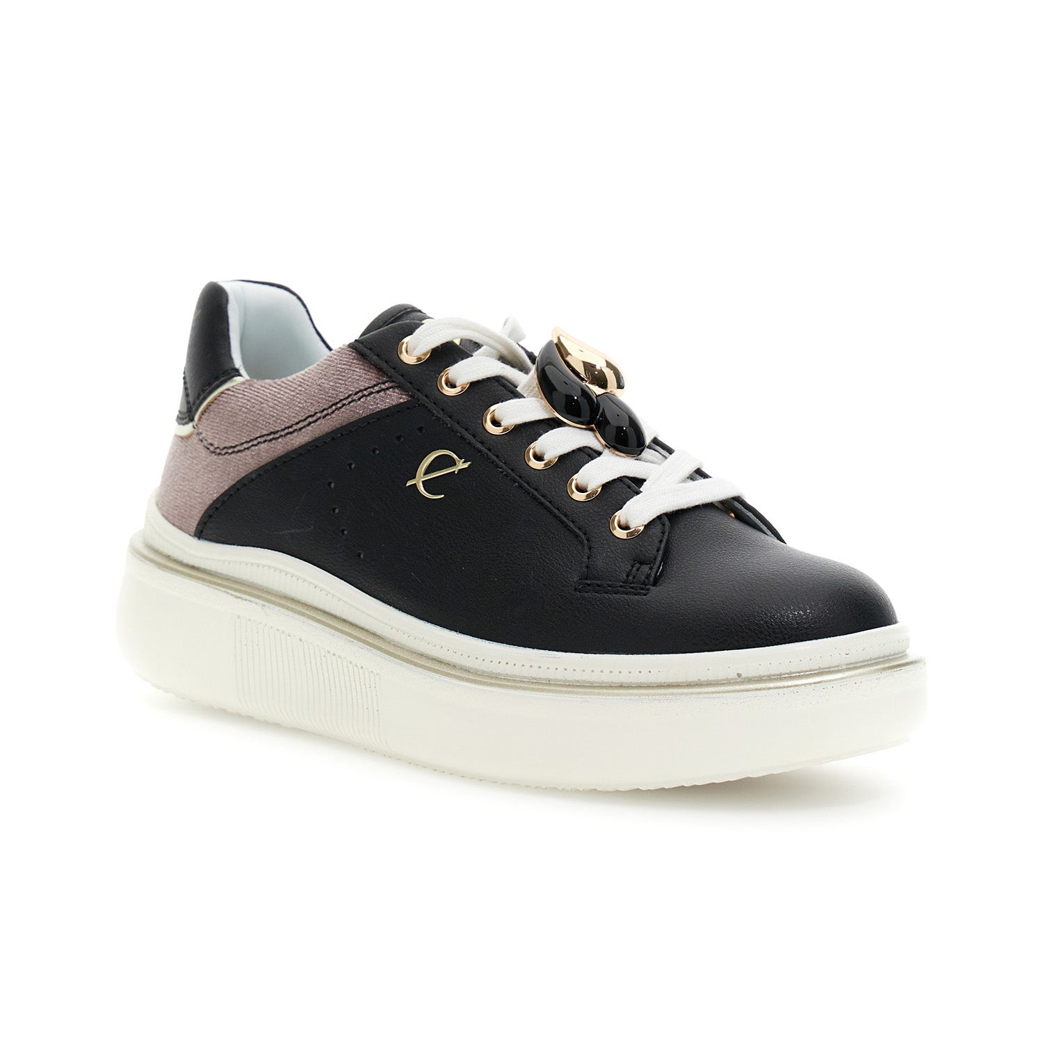 Sneakers allacciata in pelle rivestita con inserto in velluto