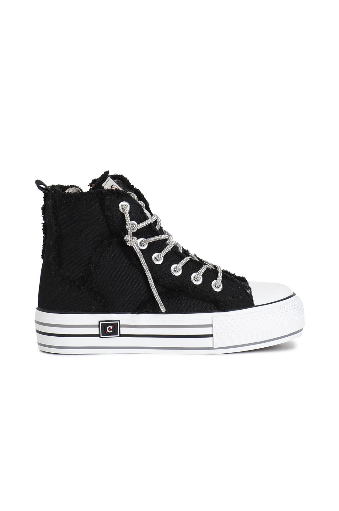 Sneaker mid in canvass con lacci strass nero