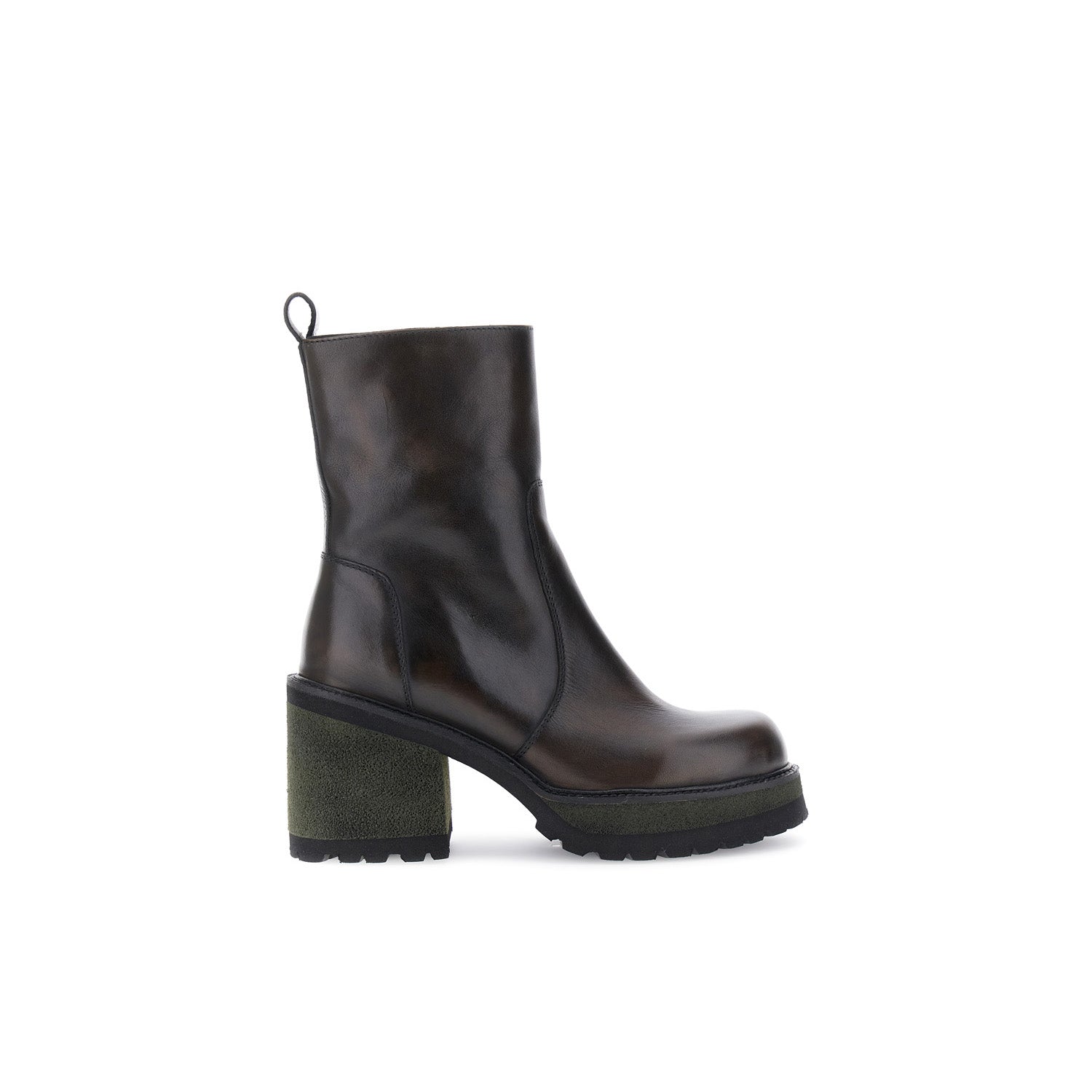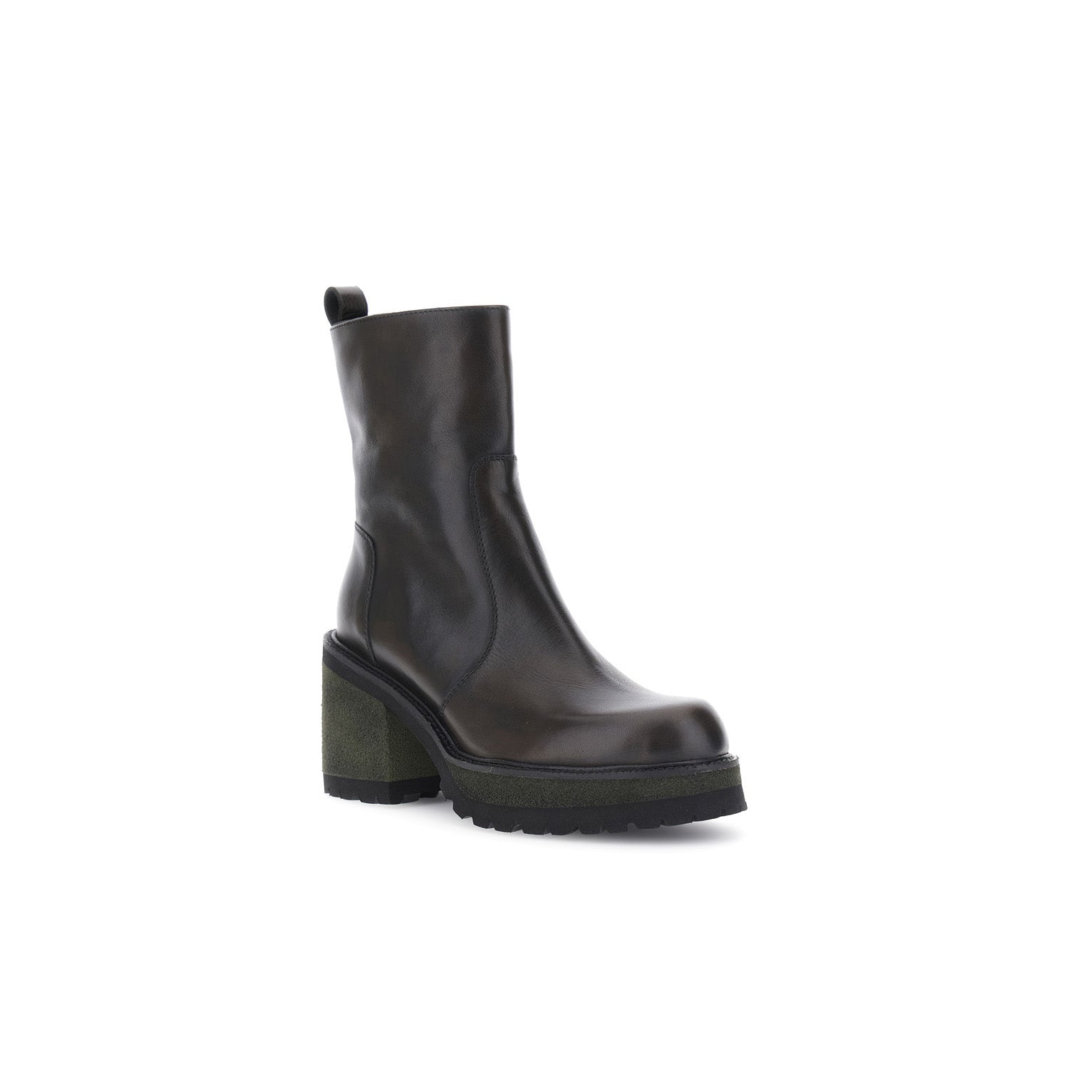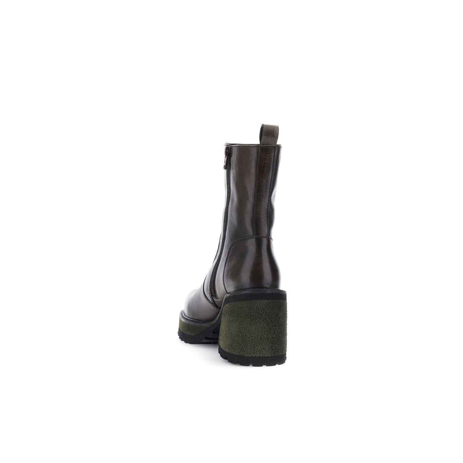 Stivaletti in pelle con tacco alto 9 cm e zip interna. Linea pulita e moderna suola carrarmato e soletto in pelle per un comfort elevato.